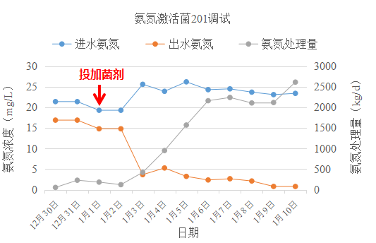 2.快速啟動污水硝化系統(tǒng),3天見效,15天內(nèi)實(shí)現(xiàn)出水氨氮達(dá)標(biāo)排放;