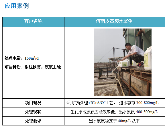 以上皮革廢水的特點使得皮革廢水的處理難度較大,其難度在難度分級中處于中上等。企業(yè)尤其是在氨氮、總氮減排方面面臨巨大的壓力。針對這一問題,目前最為安全有效、長期穩(wěn)定的方式就是對系統(tǒng)進行生物強化。研究顯示,日常運行過程中,定期投加菌劑,可以更好的提高系統(tǒng)的耐沖擊能力,但目前大多數(shù)廠家,通常是在系統(tǒng)受到?jīng)_擊時選擇投加大量菌劑,無論是哪種情況,選對菌劑很重要。庫巴魯®氨氮激活菌201 ,一款氨氮去除率高達99.9%的硝化細菌產(chǎn)品,有效提高系統(tǒng)的硝化能力,增加生化系統(tǒng)抗沖擊性,3天見效,15達標。小小的細菌,大大的能量!