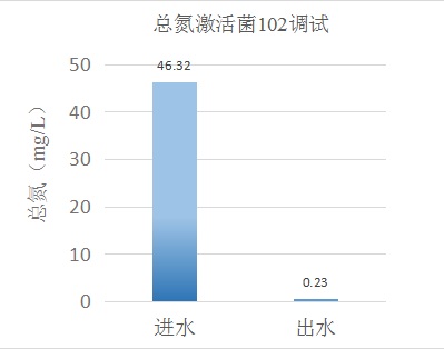 我司技術(shù)人員通過現(xiàn)場評估,發(fā)現(xiàn)生化系統(tǒng)總氮去除效率有限,生化溫度30℃,系統(tǒng)內(nèi)有效生物量不足,導(dǎo)致系統(tǒng)抗沖擊能力差,出水總氮難以達標。通過技術(shù)人員現(xiàn)場投加復(fù)合碳源101和激活菌102,再配合現(xiàn)場生化系統(tǒng)運行條件控制、優(yōu)化,達到如下效果: